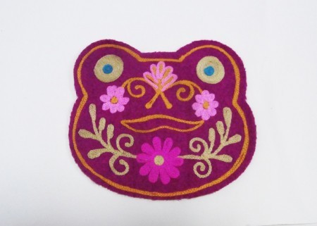 ひとつひとつ手作業でカットしたフェルトに独特な刺繍を施した個性的な蛙の表現が魅力的です。