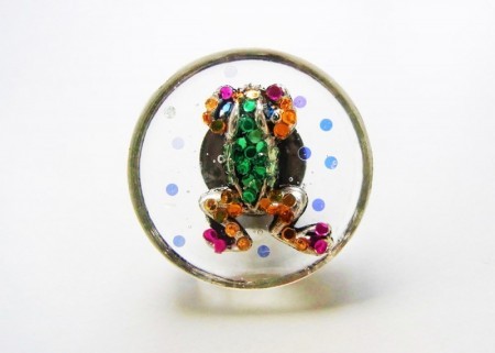 カエルハンドメイドアクセサリー キラキラピンバッチ