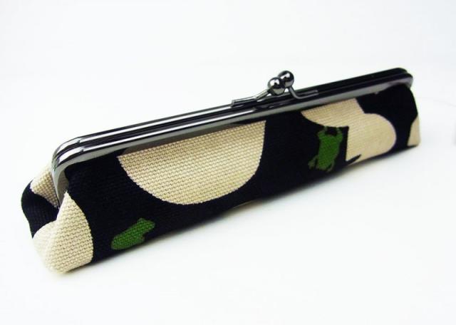 蛙帆布がま口ペンケース 一布一会 ブラック