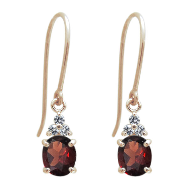 1月誕生石ガーネットを使用した、18金製のシンプルなフックピアス(アメリカンフックピアス)です。