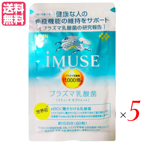 キリン iMUSE (イミューズ )免疫ケアサプリメント 60粒 5袋セット 機能性表示食品 免疫 サプリ プラズマ乳酸菌 送料無料