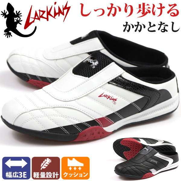 メンズ スニーカー サンダル クロッグ 白 黒 ホワイト ブラック 軽量 軽い 幅広 ワイズ 3E ミュール ラーキンス LARKINS L-6339