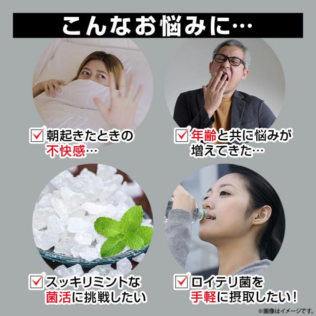 - ロイテリ菌を知って初めて飲んだのはタブレットタイプでしたが舐めるタイミングがとても大事でチョッと面倒でした。 この商品を見つけて飲むタイプなので面倒なタイミングもなく夫婦でのんでいます。 朝の口の渇き...