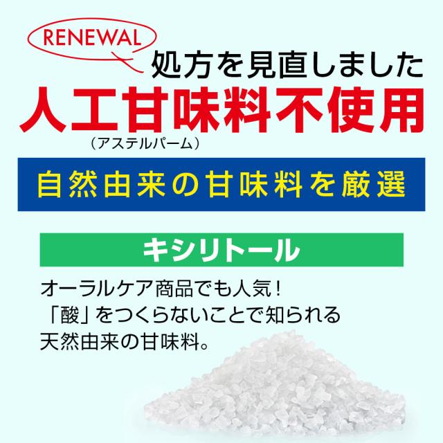 澱粉(国内製造)、還元麦芽糖水飴、ガラクトオリゴ糖、ペパーミント末、乳酸菌凍結乾燥末(乳酸菌凍結乾燥末、デキストリン)、シャンピニオンエキス末(マッシュルーム、デキストリン)/セルロース、甘味料(キシリトール)、ステアリン酸カルシウム、微粒酸化ケイ素、香料、リンゴ酸
