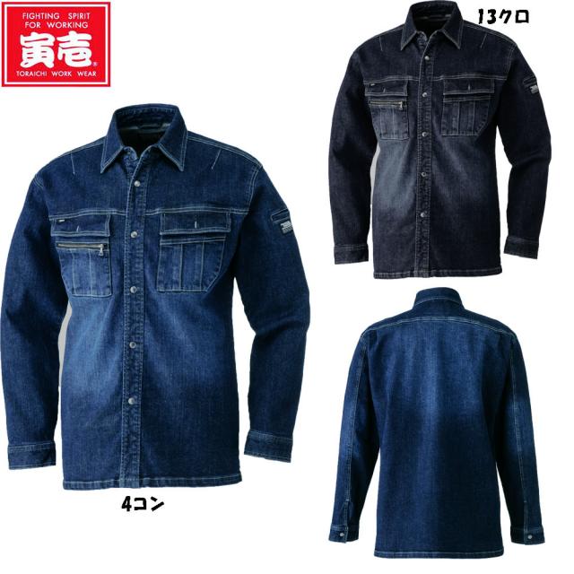 ビッグサイズ 寅壱 8930 デニム蛇腹 長袖シャツ ストレッチデニム 4L/5L