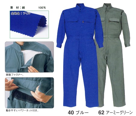 | ☆腰にはパワーネット、肩には楽脱ファスナーがついており、機能性の高いつなぎです。 ☆襟はスタンドカラー、両胸と両おしりに大きなポケットが付いています! ☆綿100%なので、吸湿性に優れ、熱に強いので火を使うお仕事などにおすすめです! ☆S〜5Lまでととても幅広いサイズ展開です。 |
