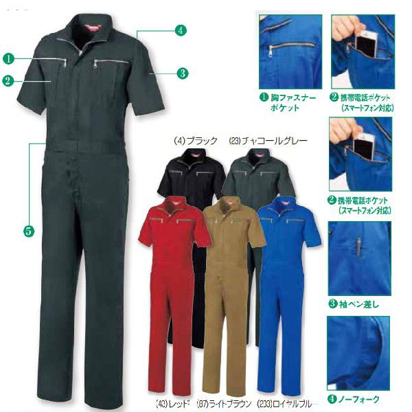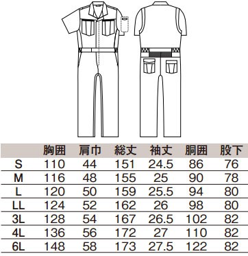 半袖カラーつなぎ服 SS〜3L