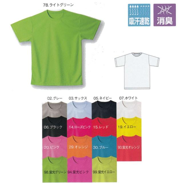 | 【素材】ポリエステル100%(クールナイス) 【色】02グレー 03サックス 05ネイビー 07ホワイト 06ブラック 14ローズピンク 15レッド 19イエロー 20ピンク 29オレンジ 30ブルー 78ライトグリーン 93蛍光オレンジ 94蛍光ピンク 98蛍光グリーン 99蛍光イエロー 【サイズ】S〜3L |