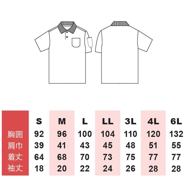 | 【素材】ポリエステル65%・綿35%(コーマ糸・鹿の子) 【色】0ホワイト 1ネイビー 4ブラック 8ブルー 26杢グレー 48ライトレッド 【サイズ】S〜3L |