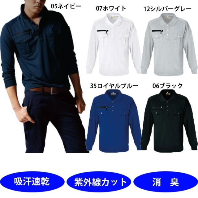 ビッグサイズ ダブルポケット 長袖ポロシャツ 吸汗速乾素材 4L/5L