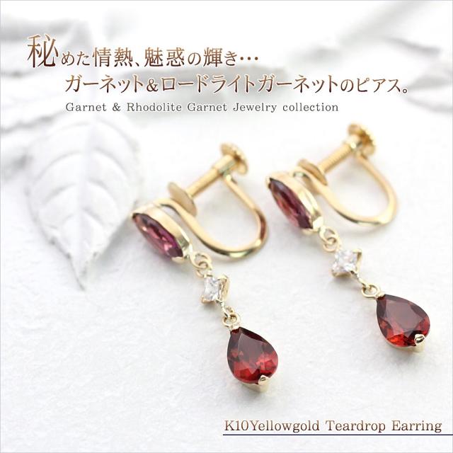 イヤリング 女性 ガーネット ロードライトガーネット ゆれる ゴールド ジュエリー アクセサリー 揺れる 10K 赤 レッド プレゼント 10金 K10 イアリング 1月誕生石 30代 40代 雫型 クリスマス プレゼント 記念日 誕生日 贈り物 女性 彼女 妻