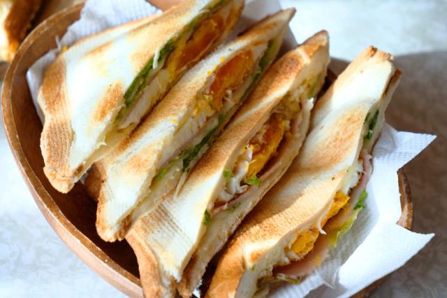 卵や野菜、ツナとチーズなどの定番具材はもちろん、ポテトサラダやきんぴらごぼうなどの夜ごはんの残りを具材にしてもおいしいです。また、フルーツやアイスクリームなどをはさんでおやつにしたり、アイデア次第でいろいろなホットサンドが楽しめます。