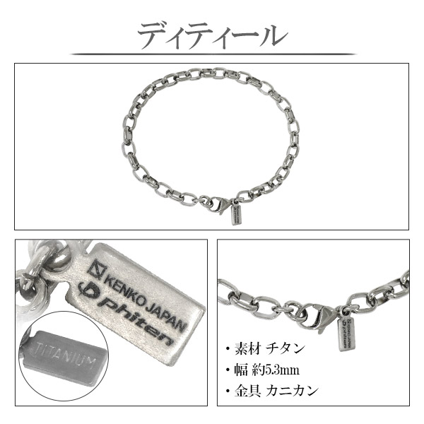 【送料無料】【ファイテン×ケンコージャパン コラボ 限定品】 チタン チェーン ブレスレット 長甲丸 幅5.3mm 17,18,19,21cm