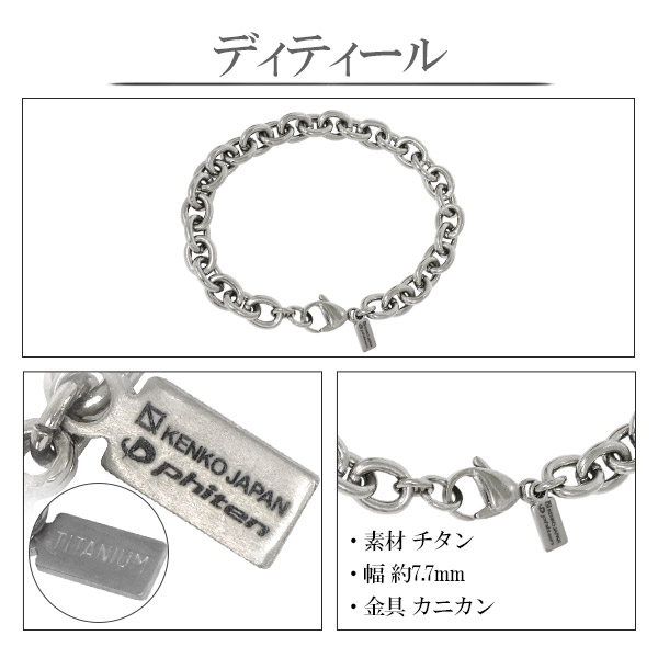 【送料無料】【ファイテン×ケンコージャパン コラボ 限定品】 チタン チェーン ブレスレット あずき 幅7.7mm 17,18,19,21cm