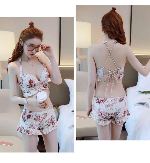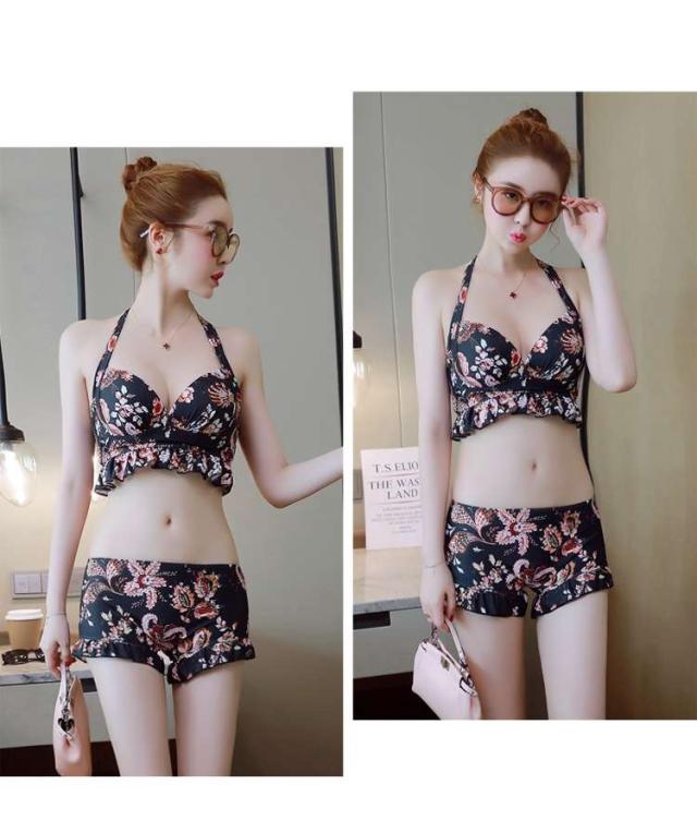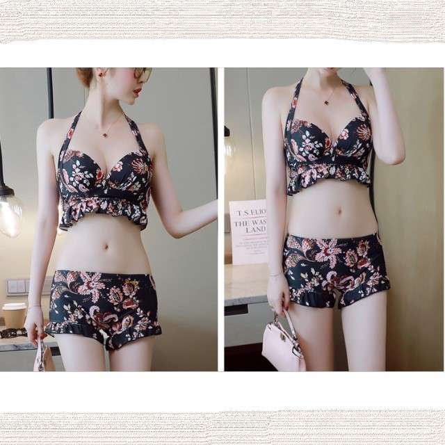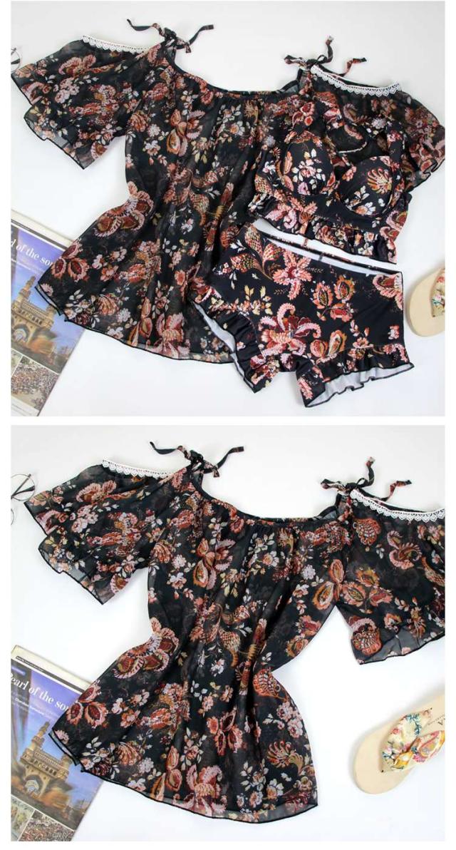体型カバー 水着 ビキニ タンキニ ビスチェ 3点セット レディース 2019年新作 ビーチウェア 40代 30代 20代 フレア ショートパンツ フリル レースアップ セットアップ 小花柄 バッククロス チュニック カバーアップ 着やせ 韓国 ママ オシャレ 海 プール ビーチ リゾート
