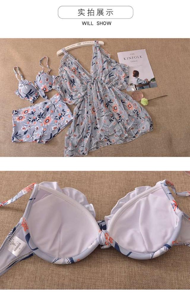 体型カバー 水着 ビキニ 3点セット 大きいサイズ レディース 2019年新作 ビーチウェア 40代 30代 20代 フレア ブラウス チュニック フリル セットアップ 肩出し 花柄 ショートパンツ カバーアップ 着やせ 韓国 ママ水着 オシャレ XL 海 プール ビーチ リゾート