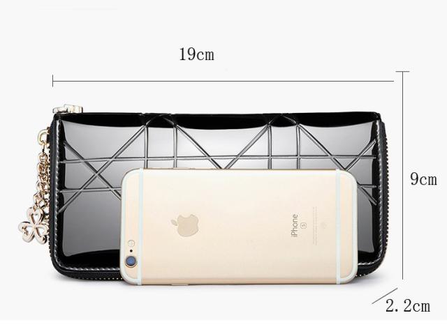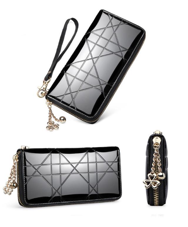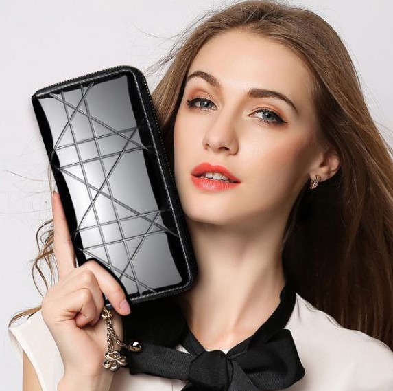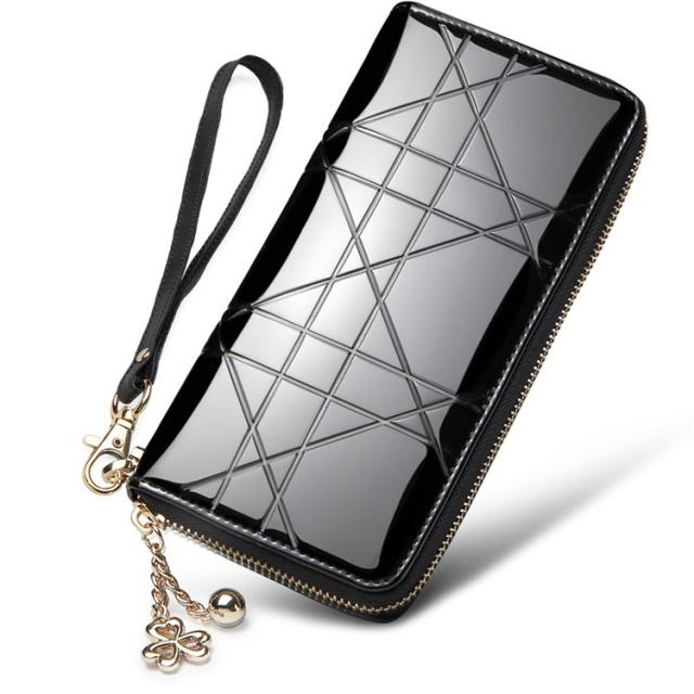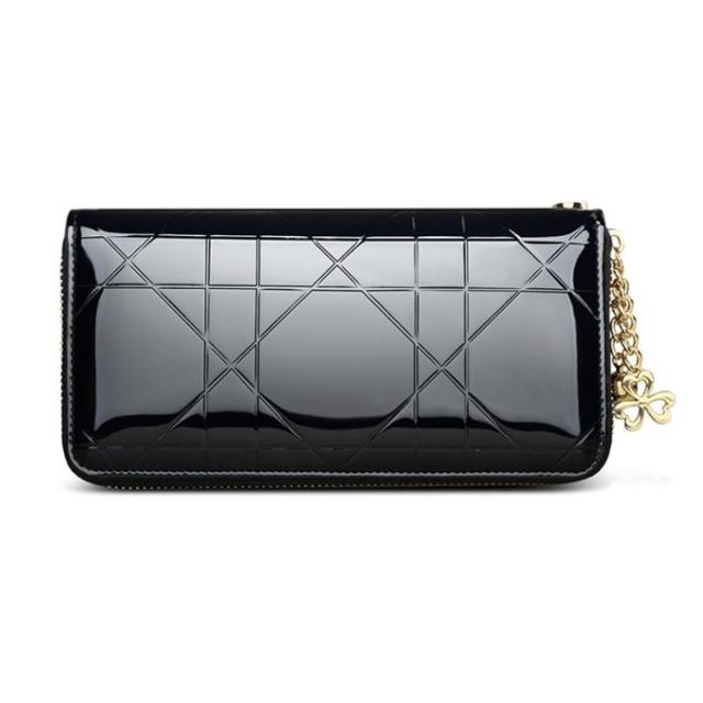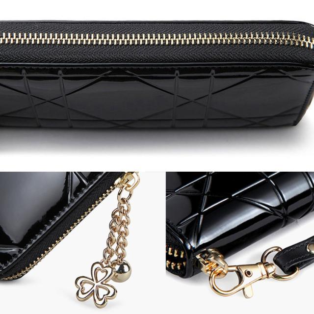 エナメル素材でエレガントな長財布。持っているだけでおしゃれ度アップです。