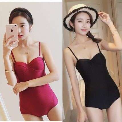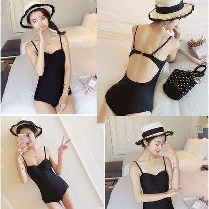 ワンピース水着 スイムウェア ビーチウェア 無地 ワンカラー シンプル ベーシック 背中見せ 大人 レディ エレガント シック トレンド