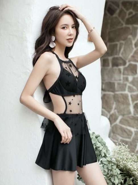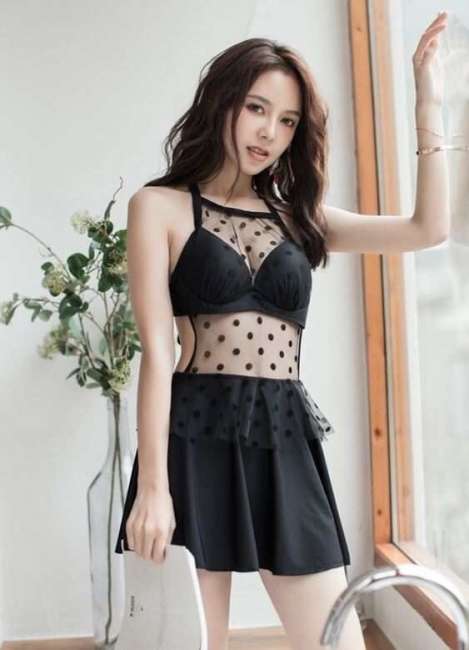ワンピース水着 シースルー ドット柄 ビーチウェア スイムウェア フレア プリーツ レディ 大人 透け感 おフェロ トレンド 流行り