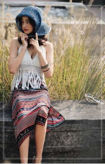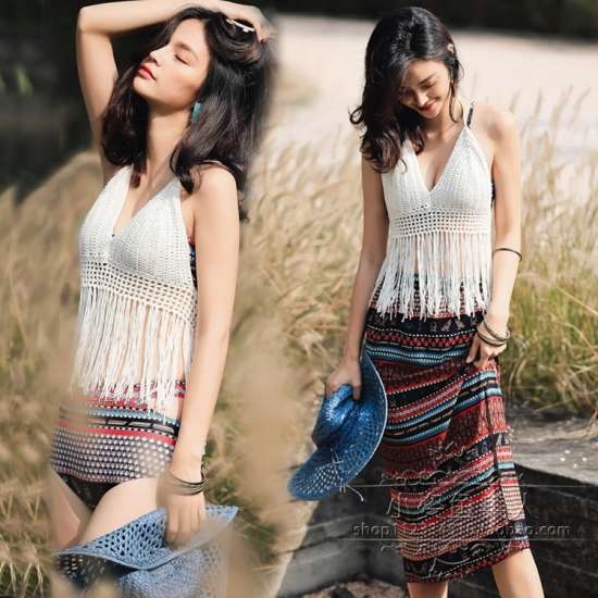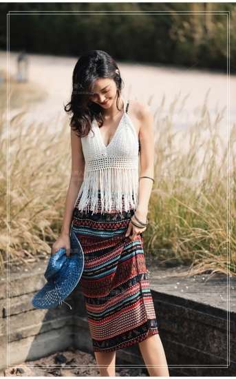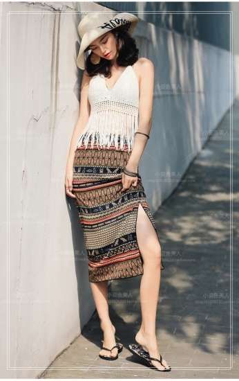 パレオ風ロングスカートは、サイドのスリットがセクシーさを演出。