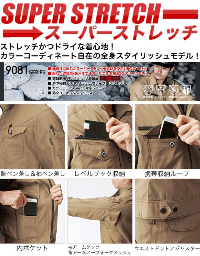 バートル 長袖ジャケット 9081 【春夏】ストレッチ BURTLE 男女兼用 メンズ レディース ブルゾン ジャンパー 吸汗速乾 作業服 作業着 9081シリーズ