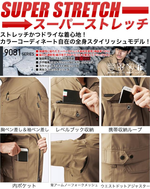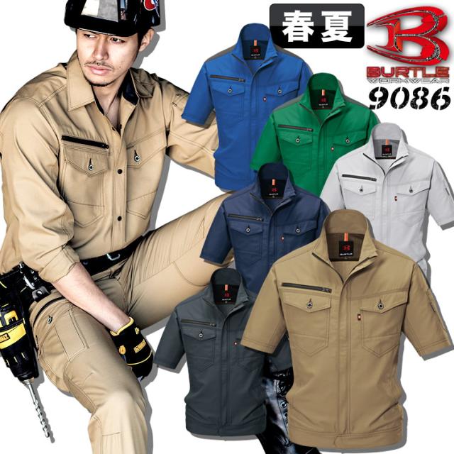 バートル 半袖ジャケット 9086 【春夏】ストレッチ BURTLE 男女兼用 メンズ レディース ブルゾン ジャンパー 吸汗速乾 作業服 作業着 9081シリーズ