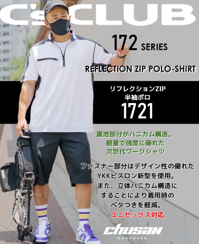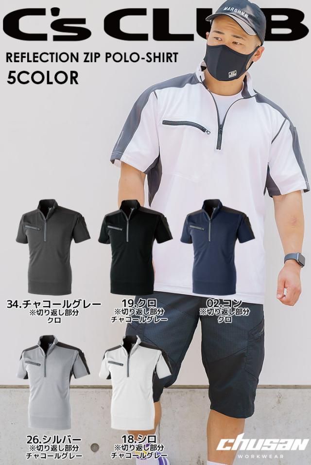 【即日発送】半袖ポロシャツ 帯電防止 防汚 反射プリント 1721 リフレクションジップ Cs CLUB 作業服 作業着 中国産業
