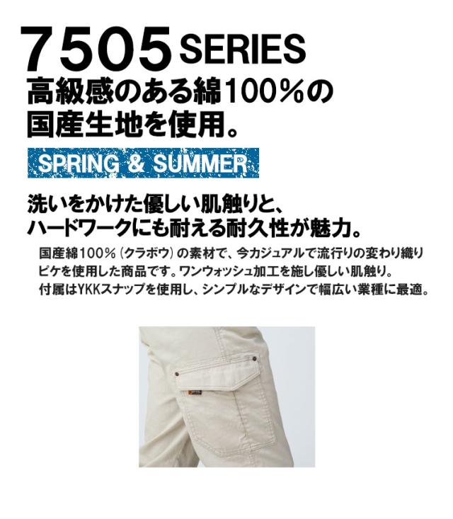 ノータックカーゴパンツ 綿100% 防縮 国産生地 7505 ズボン C's CLUB 春夏 作業服 作業着 中国産業 7505シリーズ