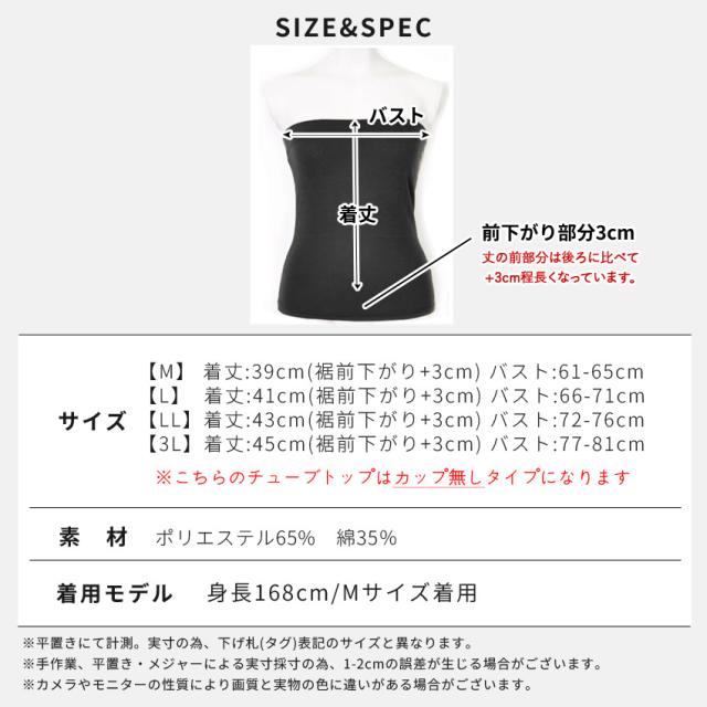 カップ無しチューブトップ 着まわし チューブトップ ベアトップ インナー 大きいサイズ ゆったりサイズ