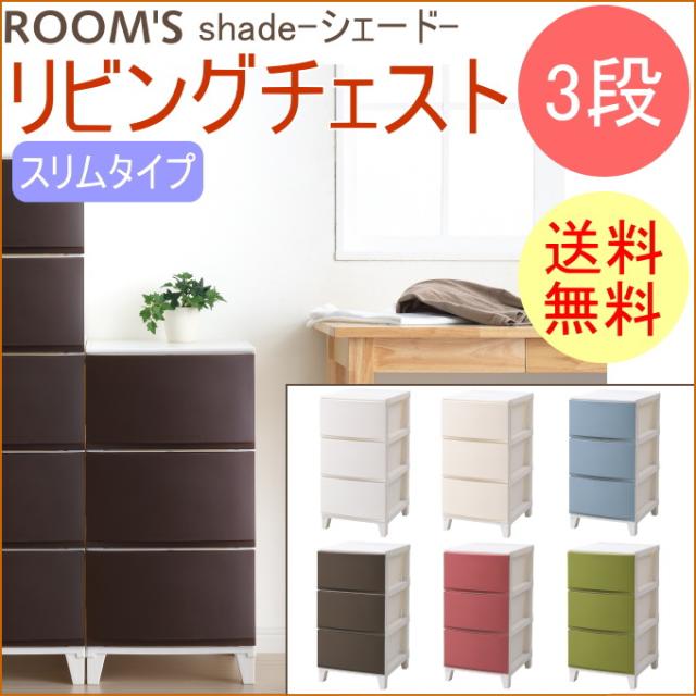 ルームスシェード リビングチェスト 3段 (RSD-S343) 組立品 日本製 プラスチック 引き出し 送料無料