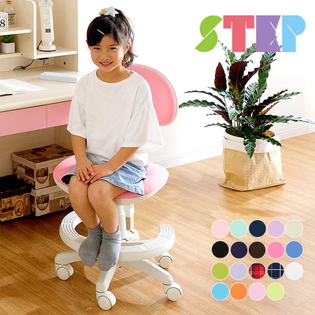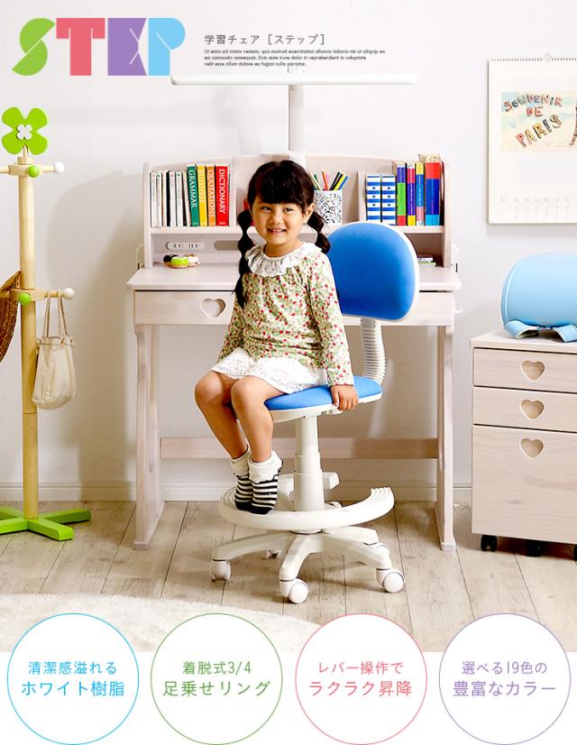 当店オリジナルカラー追加【1年保証付き/ホワイト樹脂製】学習椅子 昇降式 学習チェア STEP(ステップ) 19色対応 学習チェアー 学習いす 子供椅子 子供イス 子供用 子ども用 ファブリック 合成皮革 子供部屋 学習イス