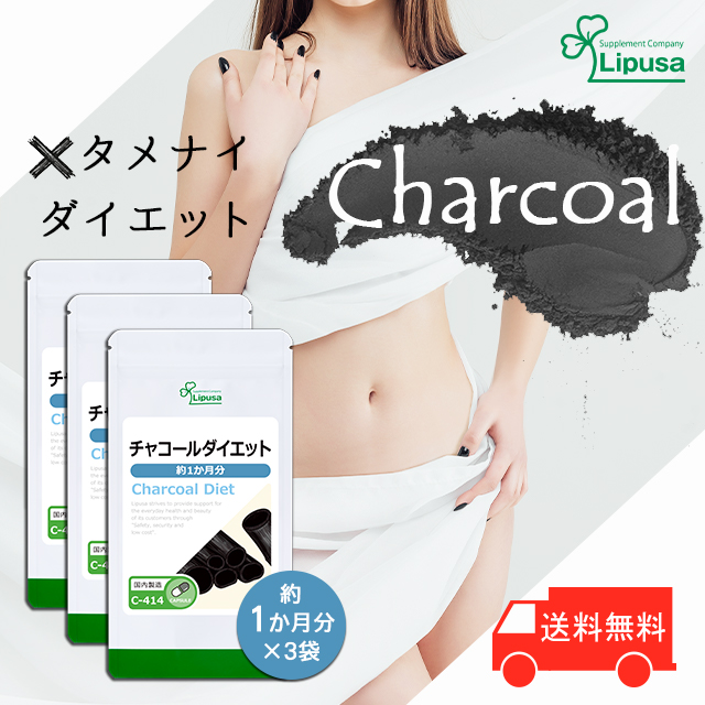 チャコールダイエット 約1か月分×3袋 C-414-3 (30カプセル×3袋) 送料無料 ダイエット ヤシ殻活性炭 オリゴ糖 サプリ リプサ Lipusa 公式 agesugi_sbe