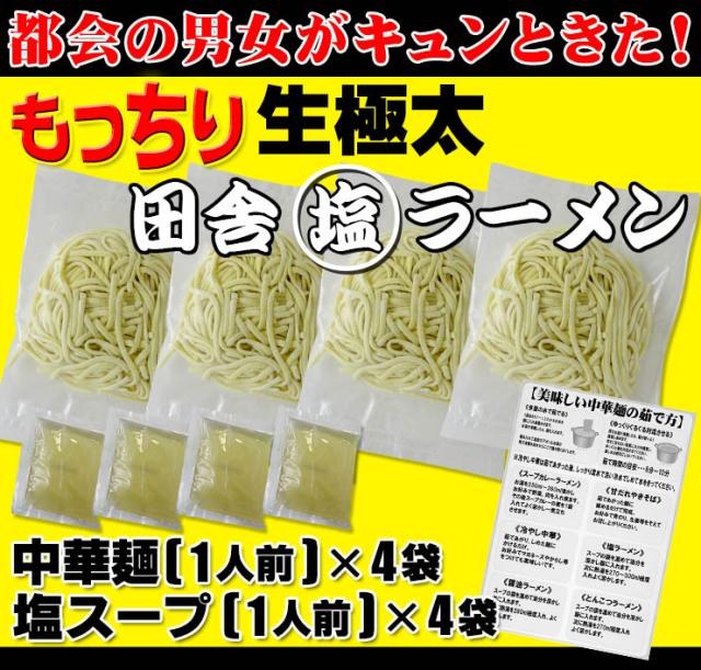 送料無料 塩ラーメン 4人前 スープ付 生麺 太麺 中華麺 しおラーメン お試し 食品 田舎生太