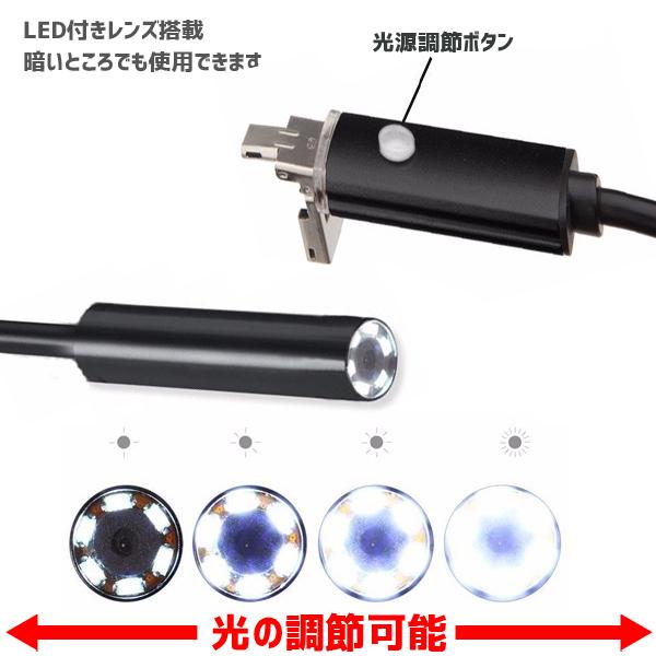 USBマイクロスコープ Android スマートフォン スマホ 対応 防水 映像 モニター 6LED 直径7mm 全長5m メール便 送料無料