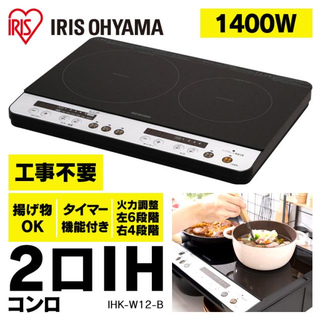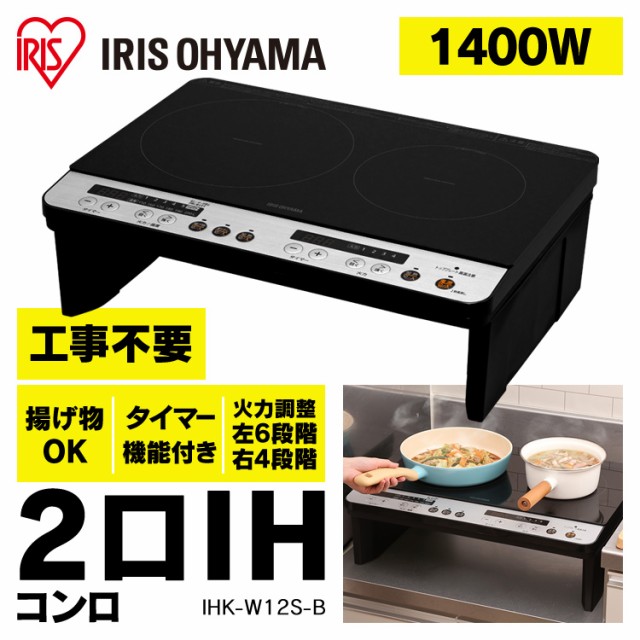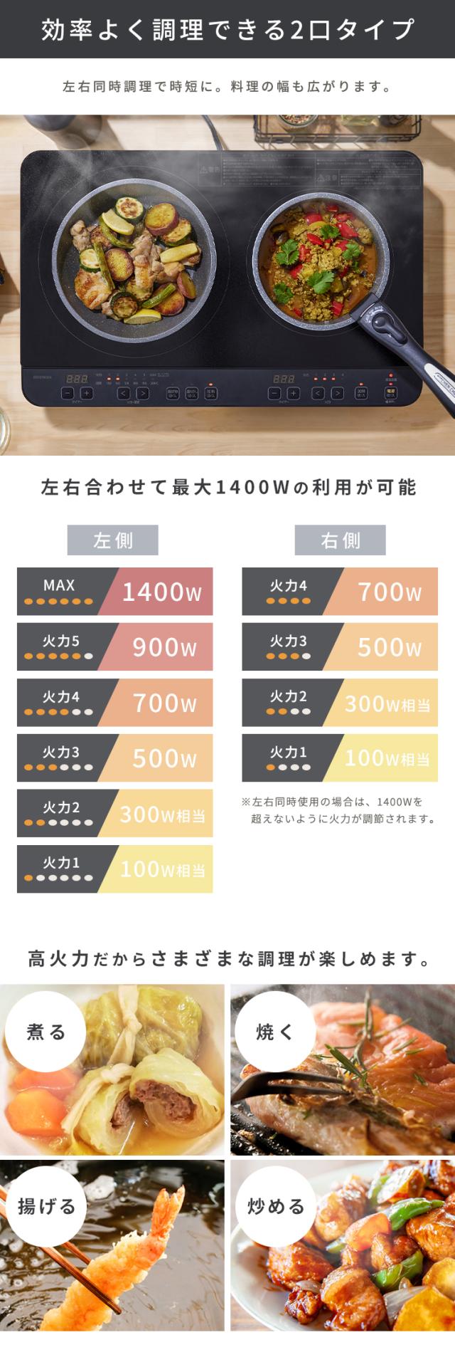 ihクッキングヒーター 2口 1400W 据置型 ihコンロ 一人暮らし ihコンロ台 100V 据え置き ih コンロ IH調理器 電磁調理器 お手入れ 簡単 シンプル 操作 工事不要 簡単設置 すぐに使える キッチン IHK-WT41-B アイリスオーヤマ *
