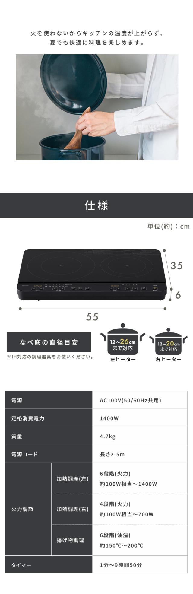 [検索用:ihクッキングヒーター 2口 ihコンロ 一人暮らし ih コンロ 工事 不要 ihコンロ台 電磁調理器 コンパクト 置くだけ お手入れ 簡単 二口 4967576706117]