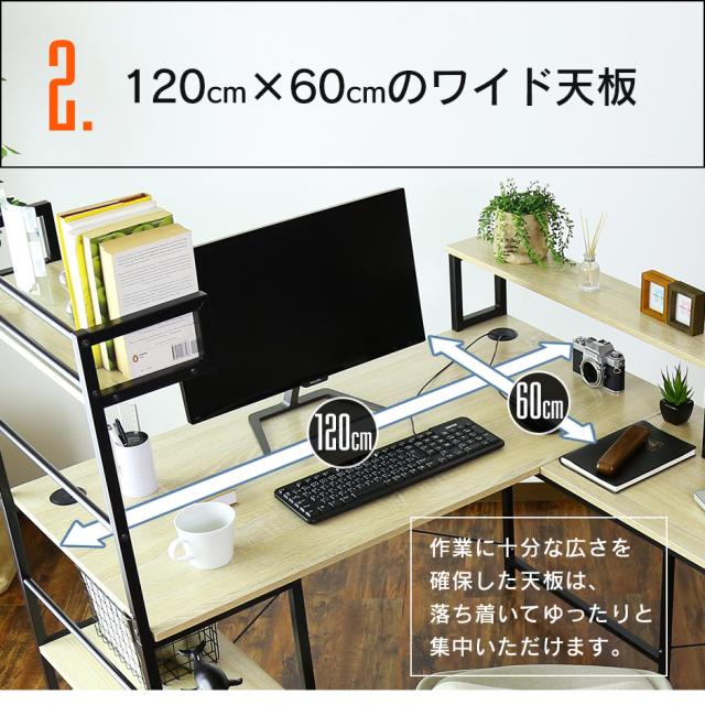 デスク 机 l字デスク パソコンデスク オフィスデスク 2枚天板 L字型 収納 ラック付き 勉強机 学習机 セス インテリア家具 ゲーミング おしゃれ 北欧 big_ki プレゼント テレワーク tm
