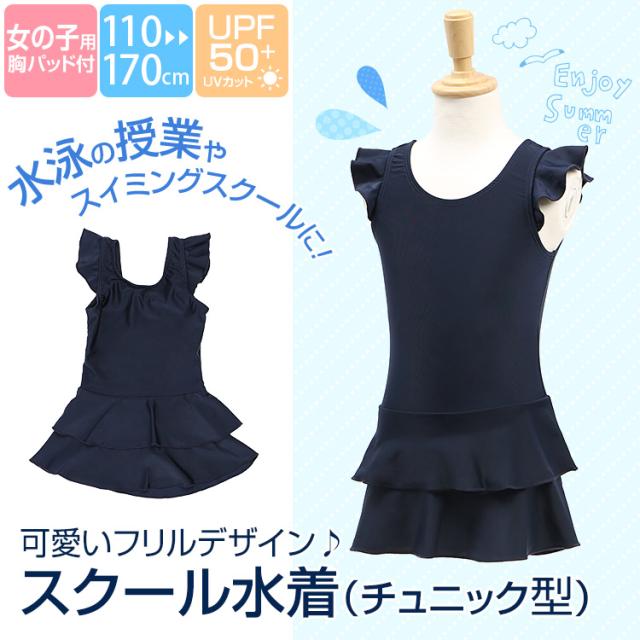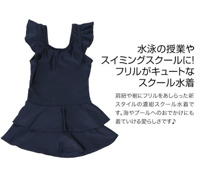 スクール水着 子供 女子 女の子 スイミング 小学生 キッズ ネイビー 紺 110 120 130 140 150 160 170 cm SCH-SWIM5755 ゆうパケット対応