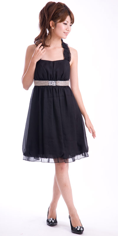 大手百貨店にドレスを提供している国内アパレルメーカーの製品です。大手百貨店で約2万5千円で販売されている商品を、サンプル現品限りで格安でバーゲンセールします。再販の予定はありませんので、お気に入りのデザインがありましたら、お早めにご購入ください。シフォンリボンを背中側で結び、ホルターネック風(キャミの紐は中に隠してもOK)に楽しんで頂けます。普通のキャミひもも縫い付けてあるので、ホルターは不安ということもありません。胸元のビーズワークがいい雰囲気を出しています。