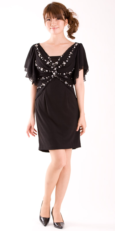 パーティードレス【ビジューティアード袖付き】
