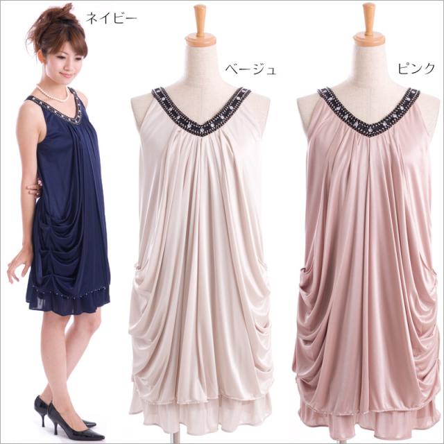 光沢がありなめらかなボドレー生地に、胸元ビジューを合わせ、ドレープの美しいラインをつくりました。