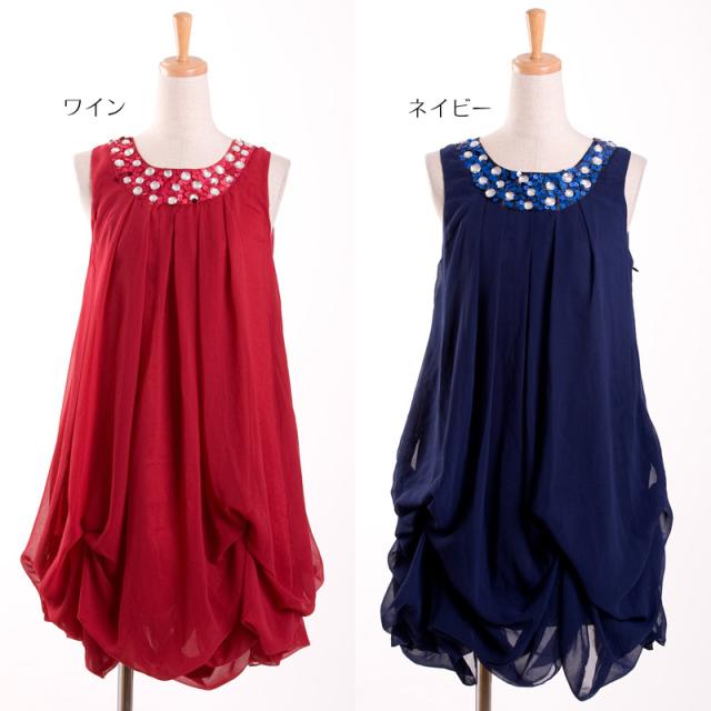 胸元のビジューとスパンコールの装飾が目を引きます。