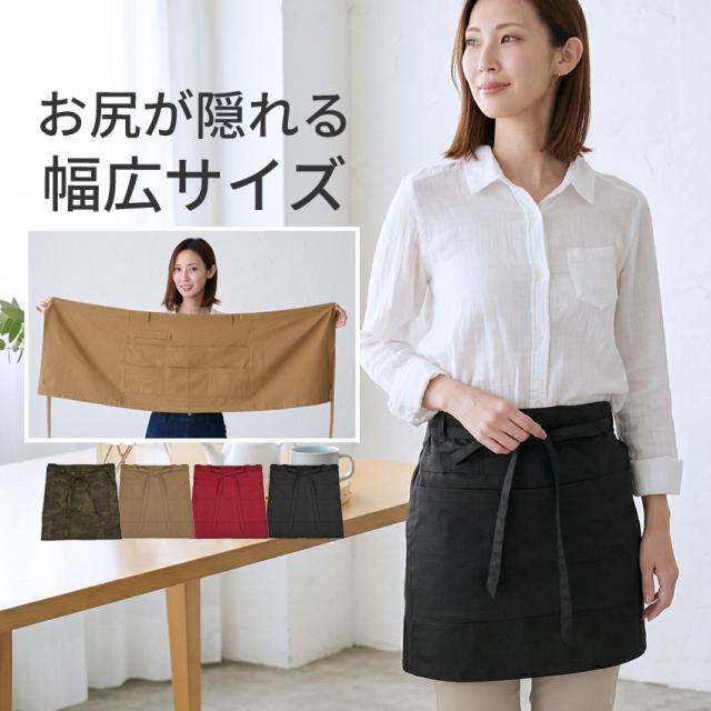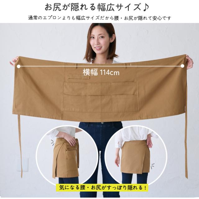 通常のエプロンよりも幅広サイズだから腰・お尻が隠れて安心です