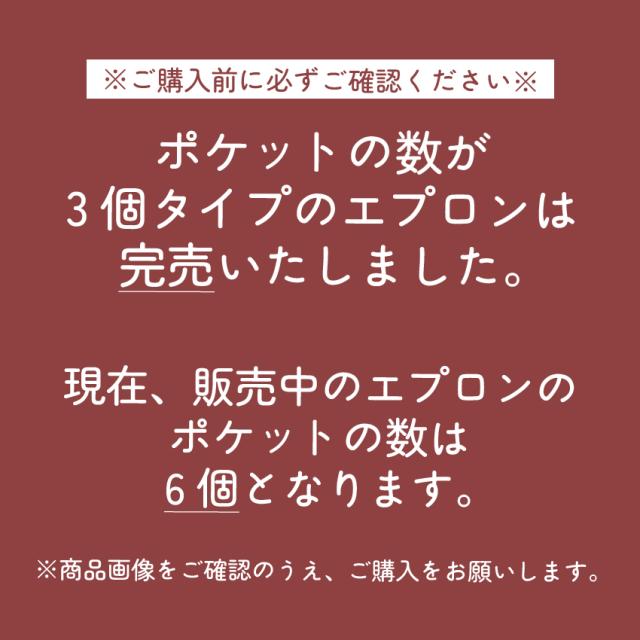 ポケットの数が3個タイプのエプロンは完売いたしました。