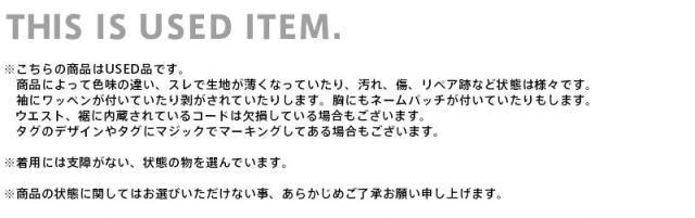 | 商品状態 | 軍放出のUSED ※商品によって色合いの違い、生地のスレ、汚れ、破れ、日焼け、傷,、リペア跡、パッチの有り無し、ウエスト、裾のコードが欠損している場合もございます。すべてが味として雰囲気が出ています。商品の状態に関してはお選びいただけません。あらかじめご了承ください。 |