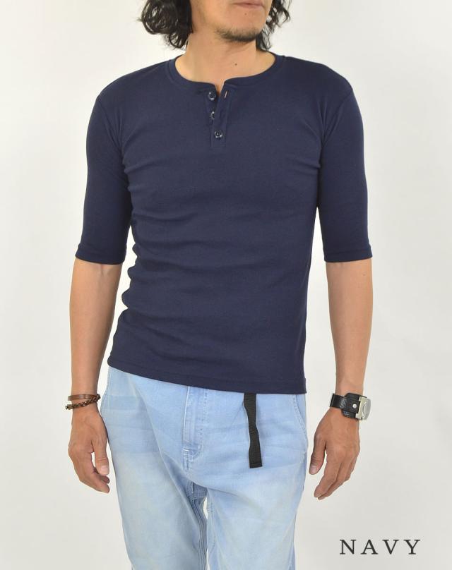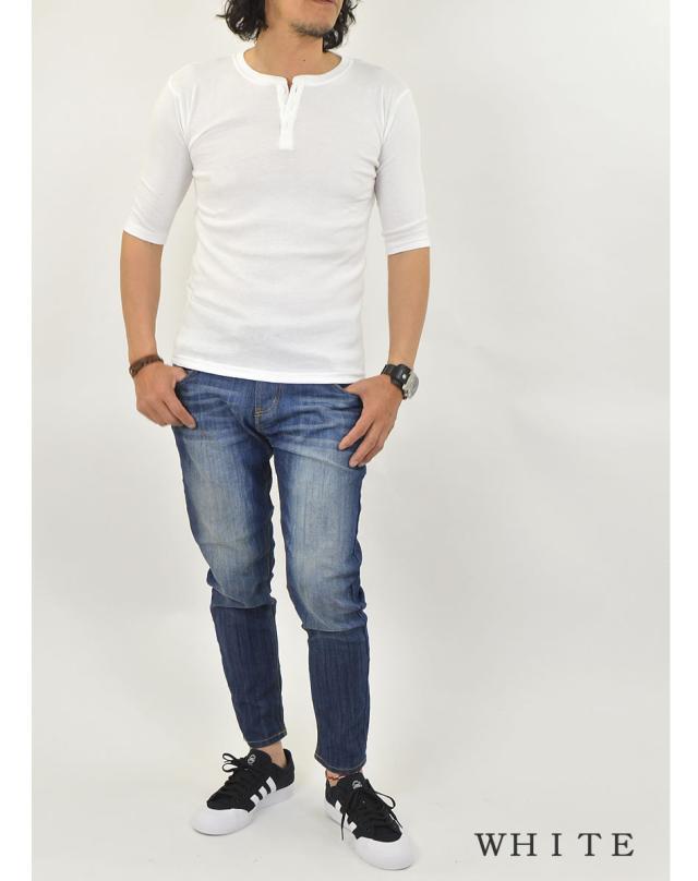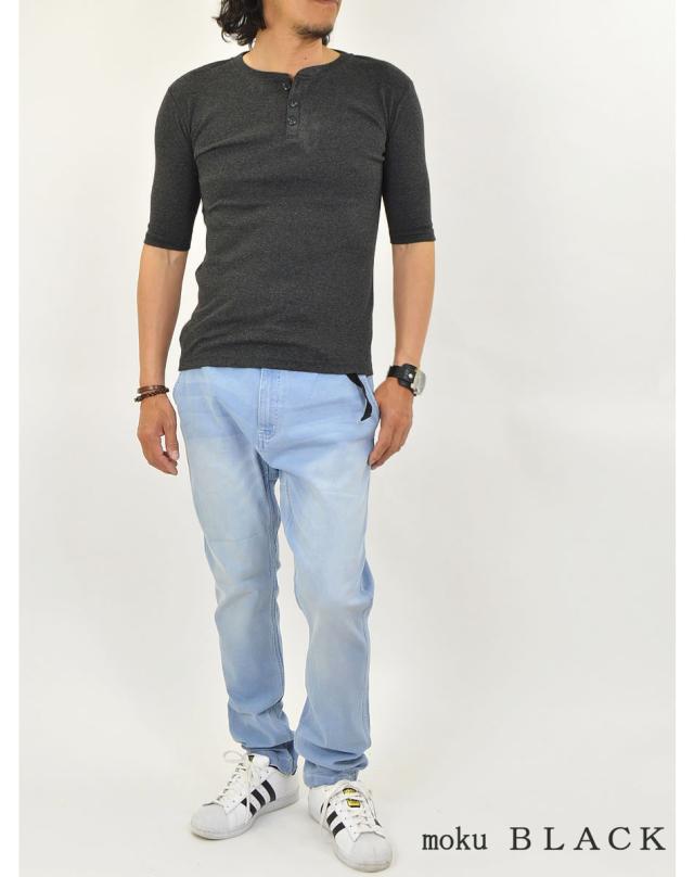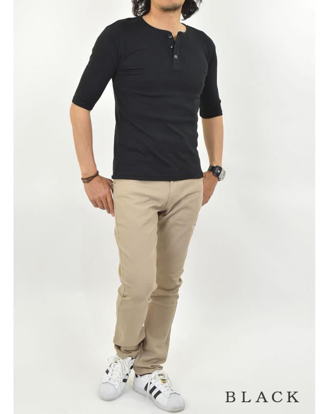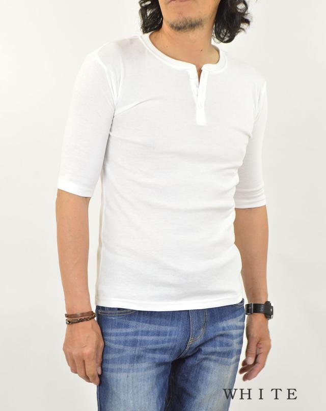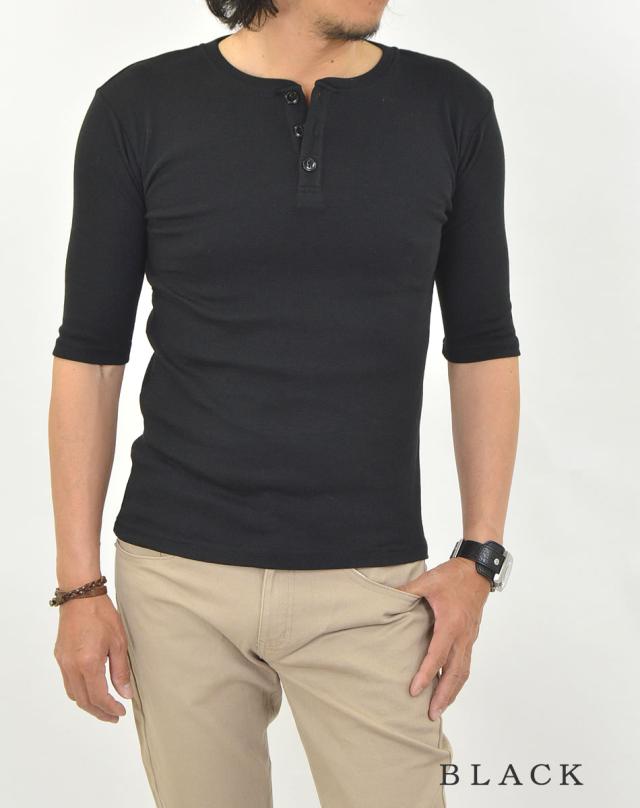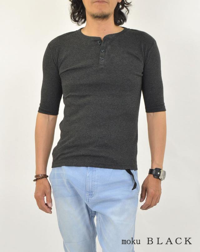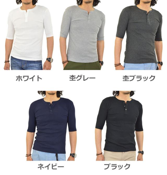 新作 Tシャツ メンズ 半袖 ヘンリーネック 半袖Tシャツ 五分袖 カットソー 無地 5分袖Tシャツ 白 黒 コットン 綿 ポリエステル トップス メール便 送料無料