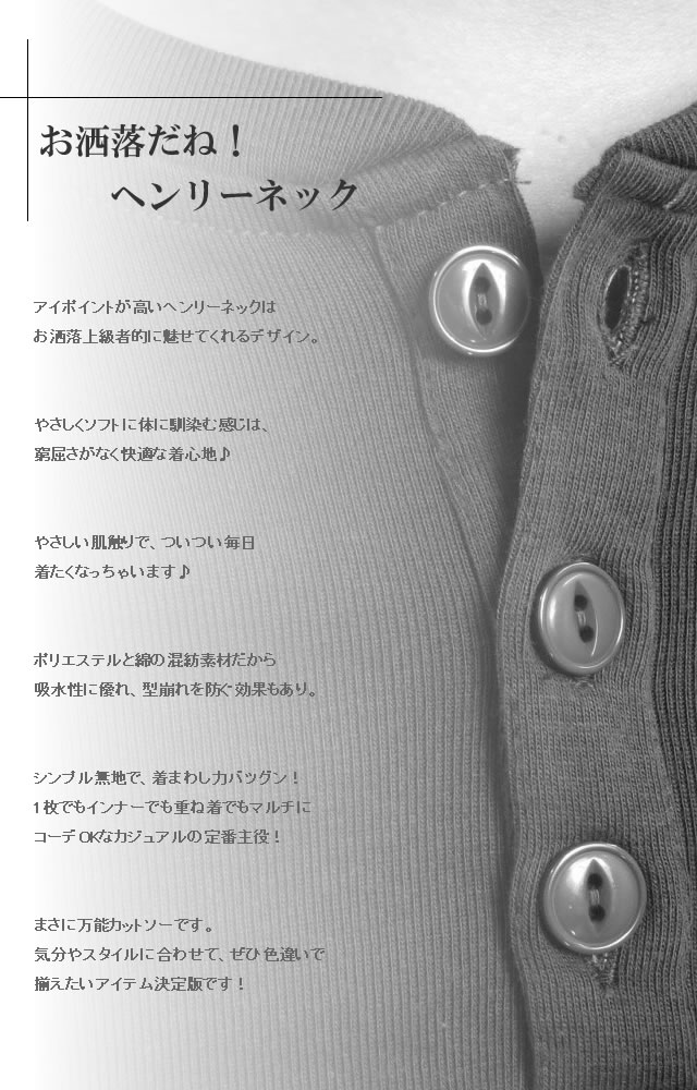 ※まとめ割5%OFF お洒落だね!ヘンリーネック【7分袖】