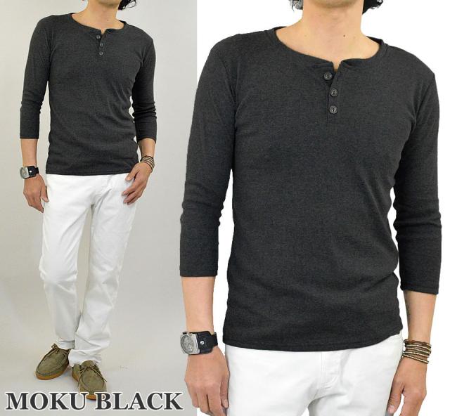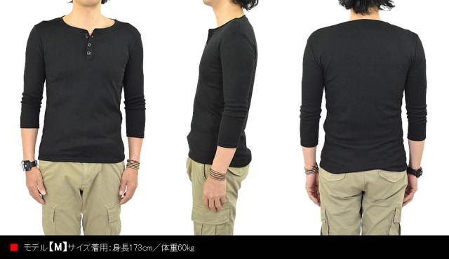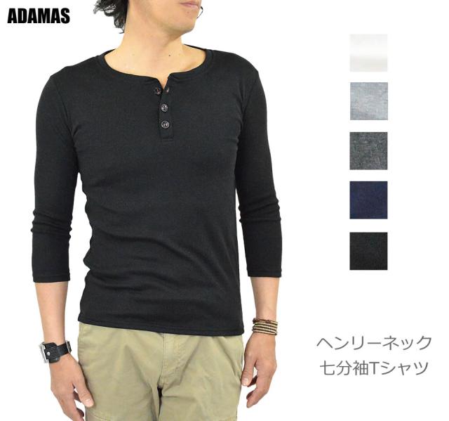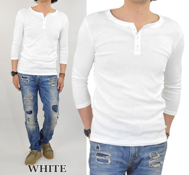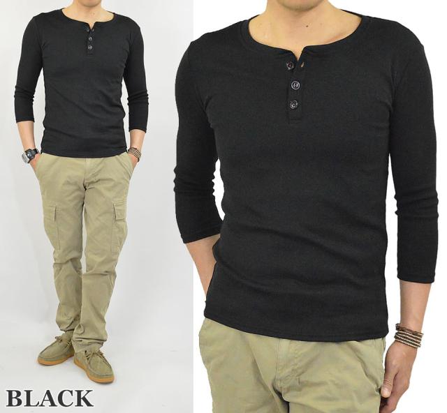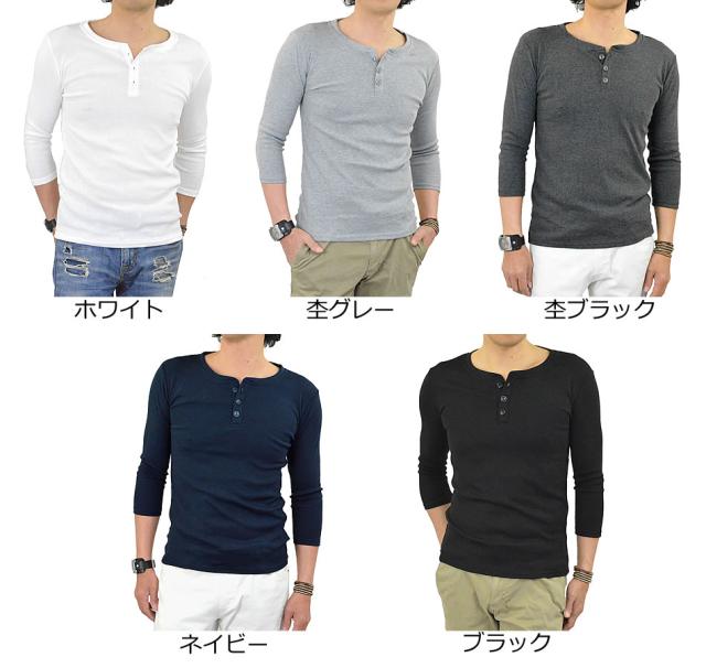 Tシャツ メンズ 七分袖 ヘンリーネック カットソー 7分袖Tシャツ ヘンリーネックTシャツ コットン 綿 ポリエステル 白 黒 無地 春 秋 新作 送料無料 メール便