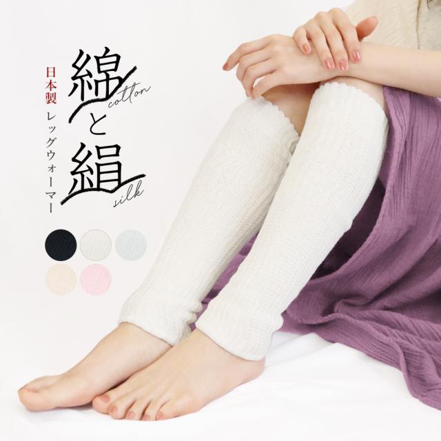 レッグウォーマー 二重編み ミディアム シルク コットン 綿 絹 日本製 男女兼用 フリーサイズ ゆったり 冷え性 冷え取り *2 *y3-2t