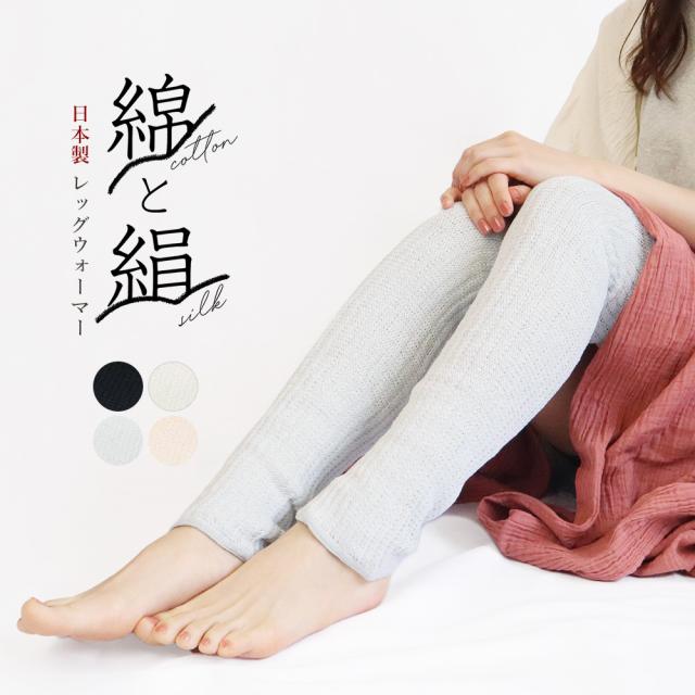 レッグウォーマー 二重編み ロング シルク コットン 綿 絹 日本製 男女兼用 フリーサイズ ゆったり 冷え性 冷房対策 防寒 *2 *y3-2t